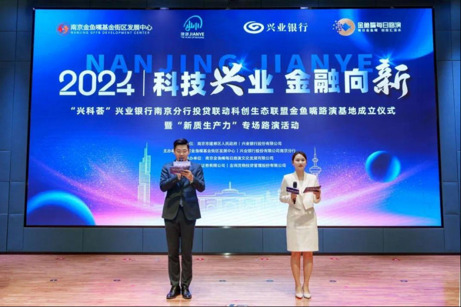 黨的二十屆三中全會明確提出,健全因地制宜發(fā)展新質生產(chǎn)力體制機制。發(fā)展新質生產(chǎn)力是推動高質量發(fā)展的內(nèi)在要求和重要著力點,而金融是推動新質生產(chǎn)力發(fā)展不可或缺的活力源泉之一。9月25日,“科技興業(yè) 金融向新”——“興科薈”興業(yè)銀行南京分行投貸聯(lián)動生態(tài)聯(lián)盟金魚嘴路演基地成立儀式暨“新質生產(chǎn)力”專場路演活動在金魚嘴基金大廈舉行。活動由南京市建鄴區(qū)人民政府指導,興業(yè)銀行南京分行、南京金魚嘴基金街區(qū)主辦,金魚嘴每日路演承辦。本次活動邀請了金雨茂物、中航證券、毅達資本、江蘇金財、航天科工等投資機構及企業(yè)代表近百人參與。