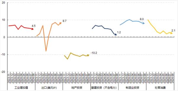 月度主要經濟數(shù)據(jù)同比增速表現(xiàn)(%)
