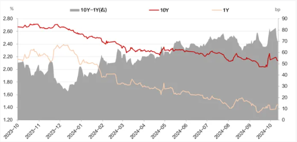 2024年三季度,債市利率先下后上,整體小幅下行,10年國債利率在2.0%-2.3%區(qū)間震蕩,資金面整體均衡,8月以來資金分層現(xiàn)象加劇,10Y-1Y國債利差震蕩走闊。分品種來看,利率好于信用,地方債和國債好于國開,利率中短端好于長端。分階段來看,1)宏觀數(shù)據(jù)延續(xù)走弱,7月央行超預期降息,貨幣以外增量政策偏弱,整體利好債市;2)央行干預落地,大行賣長債買短債,市場反應逐漸鈍化,且央行的意圖并非大幅扭轉債市利率、引發(fā)負反饋風險,8月13日增加OMO投放、8月21日交易商協(xié)會發(fā)文表示“一刀切暫停國債交易是對央行意圖的誤解”,穩(wěn)定債市情緒;3)9月底央行公布“雙降”等一攬子增量金融政策,中共中央政治局會議“加檔”討論經濟,穩(wěn)增長預期顯著提振,股市大幅上行,債市進入快速調整期。