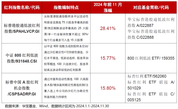 和其他投資主題相比,2024年紅利指數投資究竟有多暖人心?讓我們以布局頗具特色的紅利指基大廠——華寶基金旗下3款紅利指基所跟蹤的標的指數表現來看看: