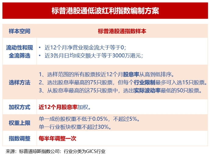 標普港股通低波紅利指數的編制方案有何奧秘?標普港股通低波紅利指數所強調的“低波”,就是選取實際波動率低的股票。低波動因子能幫助投資者規避部分非理性投資行為,從而有助于提升風險收益。該指數是從標普港股通指數樣本中選取75只股息率最高的股票,然后從75只股票中進一步剔除波動率最高的25只股票,如此來降低高股息投資組合的波動率。同時,標普港股通低波紅利指數亦明確限制單一成份與行業比重,兼顧大盤與中盤,引入了更多行業龍頭,重視頭部效應。該指數前十大成份股主要分布在房地產、金融等大盤藍籌板塊,紅利屬性顯著。