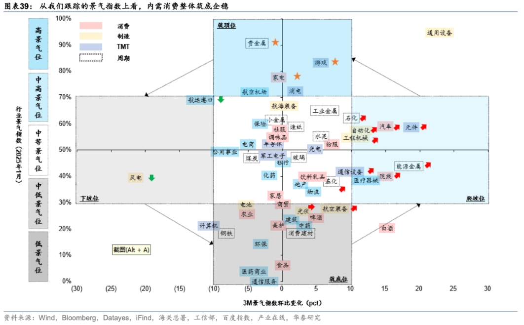2024年下半年以來,在擴內需政策和資產價格預期改善驅動下消費以溫和復蘇為主旋律,體驗式消費和新性價比消費成為亮點。從華泰證券的中觀景氣指數上看消費的景氣復蘇有三大線索: