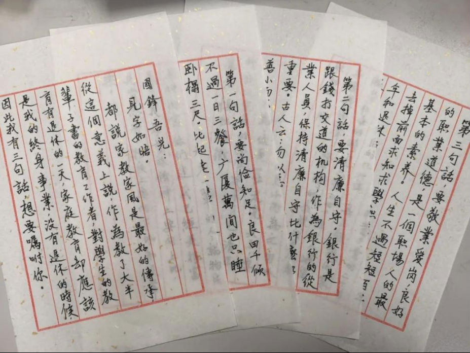 “一封家書助清廉”活動中一位父親給行員女兒的家書