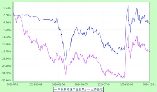中銀戰(zhàn)略新興產(chǎn)業(yè)C于2020年12月11日成立,近五年基金回報(bào)/業(yè)績基準(zhǔn)回報(bào)分別為:基金合同生效日至2020年底14.57%/3.60%、2021年底25.31%/0.03%、2022年底-20.29%/-17.10%、2023年底-16.87%/-7.89%、2024年底17.73%/11.17%。