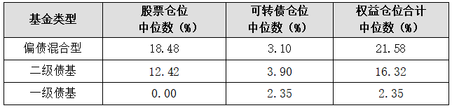 表1:各類型基金的權益?zhèn)}位中位數(shù)