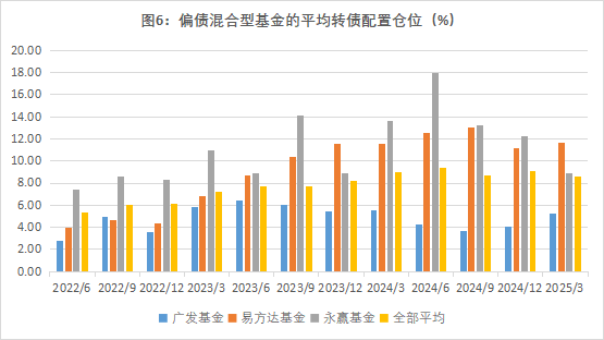 除了股票資產(chǎn),“固收+”基金中還有一類增益資產(chǎn)——可轉(zhuǎn)債。近3年來,偏債混合型基金平均配置可轉(zhuǎn)債的比例為7.75%,廣發(fā)基金旗下偏債混合型基金轉(zhuǎn)債平均倉位為4.83%,略低于市場平均水平。