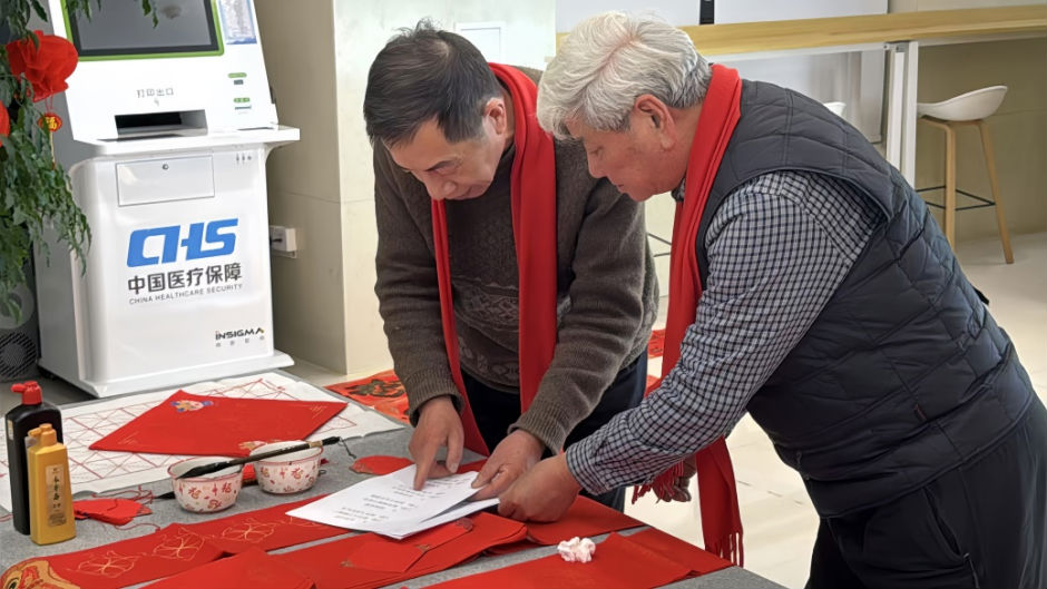 2025年春節前夕,漢中路客戶服務中心舉辦了豐富多彩的迎新春活動,作為特邀嘉賓,王先生現場揮毫潑墨,為客戶和員工書寫新春對聯。蒼勁有力的筆觸間,既有對新年的美好祝福,更有對中國人壽“守護人民美好生活”承諾的充分認同。活動現場,一位年輕客戶接過對聯感慨:“看到王先生與國壽的故事,才明白保險服務真的能從業務辦理延伸到情感陪伴。”