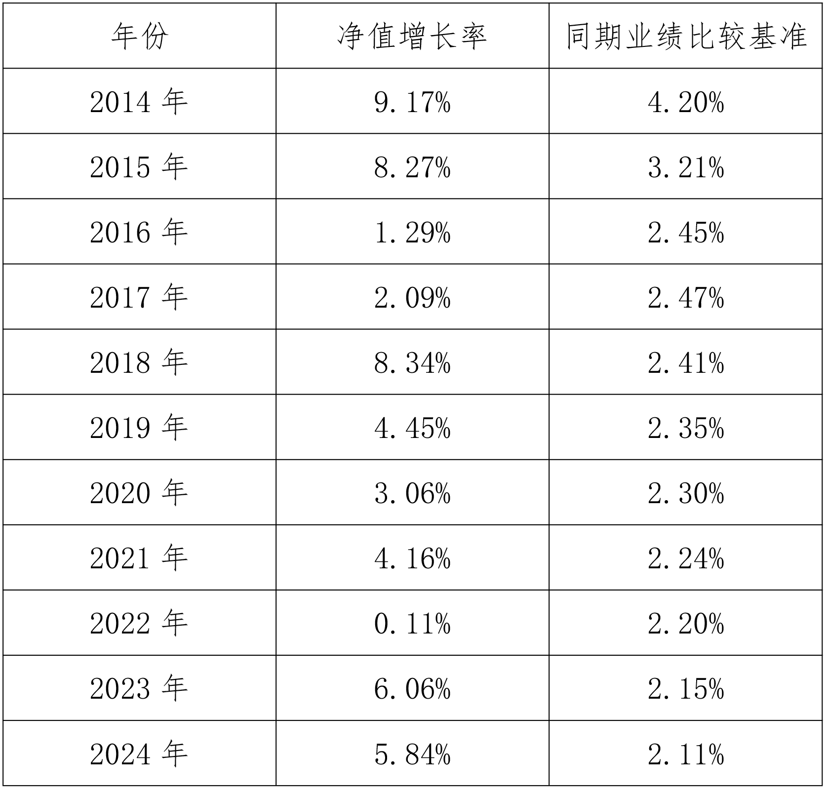 作為一只純債基金,完全不投資股票市場,不投資具有股性的可轉債,重點配置較高等級的信用債,輔以杠桿操作增厚收益彈性。雖然沒有股市那般大開大合,但勝在細水長流。根據基金一季報數據顯示,截至3月31日,諾安泰鑫一年定期開放債券A過去一年凈值增長率為4.61%,同期業績比較基準收益率為2.09%。此外,根據基金歷年年報數據顯示,在2014年至2024年的11年間,諾安泰鑫一年定期開放債券A實現了不俗的收益,其中2014年、2015年、2018年、2023年和2024年凈值增長率均超過5%,分別為9.17%、8.27%、8.34%、6.06%和5.84%。