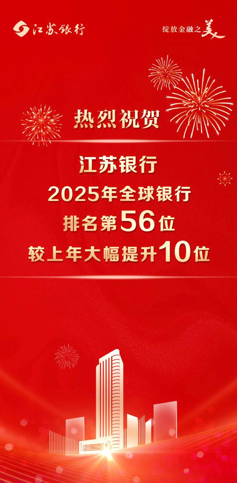 再進(jìn)10位!江蘇銀行位列“全球銀行1000強(qiáng)”第56位
