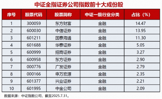 券商ETF(512000)及其聯(lián)接基金(A類006098;C類007531)被動跟蹤中證全指證券公司指數(shù),一鍵囊括49只上市券商A股,其中近6成倉位集中于十大龍頭券商,“大資管”+“大投行”龍頭齊聚;另外4成倉位兼顧中小券商的業(yè)績高彈性,吸收了中小券商階段性高爆發(fā)特點,是集中布局頭部券商、同時兼顧中小券商的高效率投資工具。截至7月31日,券商ETF(512000)最新規(guī)模達246.43億元,其最近6個月日均成交額達8.31億元,規(guī)模和流動性優(yōu)勢突出。