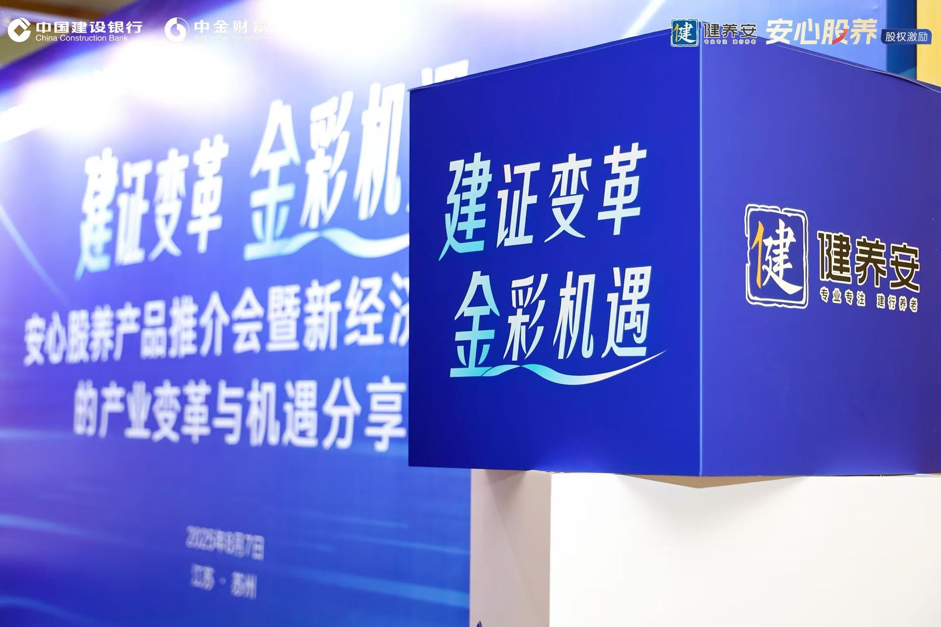 8月7日,中國建設銀行蘇州分行舉辦“健養安”安心股養產品推介會暨新經濟形勢下的產業變革與機遇分享會。本次活動以“建證變革?金彩機遇”為主題,圍繞建行“1314”養老金融服務體系,聚焦新經濟形勢下的產業趨勢、企業員工的備老需求,以實際行動貫徹落實黨的二十屆三中全會、中央金融工作會議精神,做好養老金融大文章,助力“養老”變“享老”。