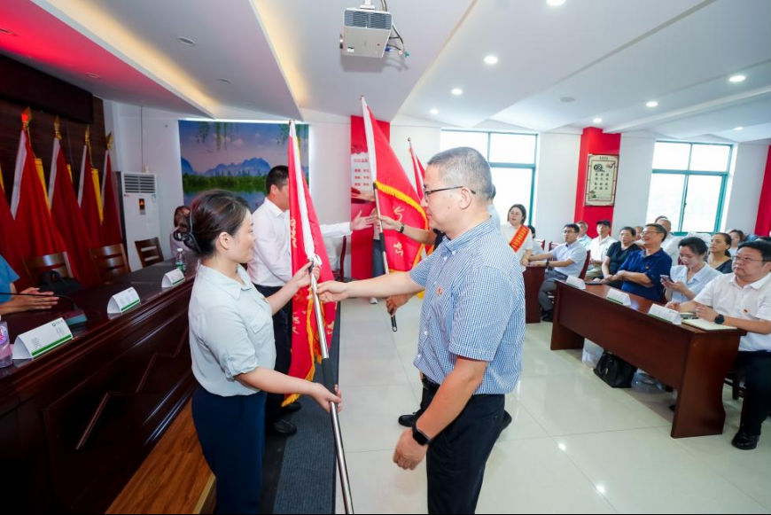 莊重的授旗儀式將活動推向高潮。當地政府領導向西蓮村黨總支部授旗,國家金融監督管理總局高淳監管支局領導向高淳支公司黨支部授旗,中國人壽江蘇省分公司客戶服務管理中心/消費者權益保護部黨支部書記向南京市分公司運營服務部/消費者權益保護部黨支部授旗。三面“金融知識宣教黨員先鋒隊”旗幟的授予,標志著以黨建為引領的金融知識普及工作以創新形式向基層縱深推進,金融宣教工作邁向更深、更實的新階段。