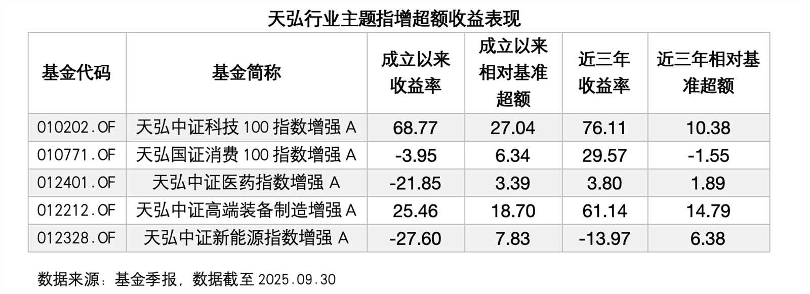 與多數同業主要聚焦寬基指增不同,天弘基金還建立了具備獨特競爭力的行業指增產品線,是行業指增布局方向最多的基金公司。天弘行業指增產品主要圍繞科技、消費、醫藥、高端制造和新能源五大關鍵領域,對標了傳統優勢產業以及未來向“新質生產力”轉型的趨勢。為投資者在寬基指數之外,提供了更精細、更高效捕捉結構性超額機會的利器。