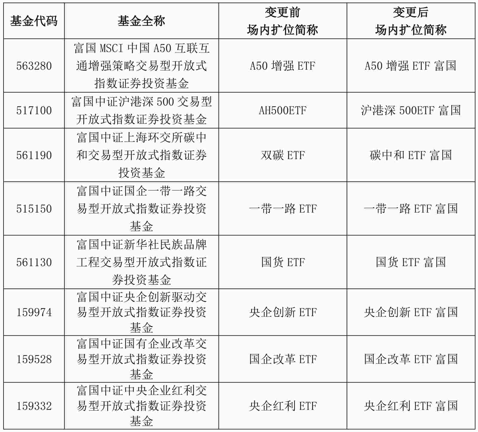 富國基金首批8只ETF簡稱調(diào)整完成,要素清晰易識別