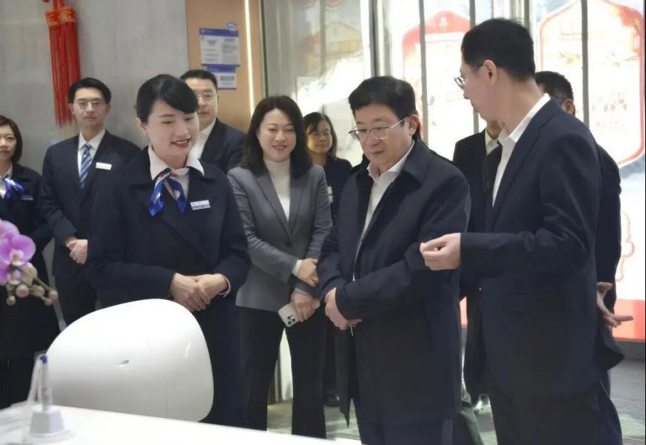 “歡迎大家來南京分行調研走訪!”14日上午,呂家進一行步入興業銀行南京分行營業部慰問一線員工,智能服務機器人熱情迎賓,吸引大家駐足體驗。隨后,呂家進在南京主持召開“新年第一會”——2026年第一次數字化轉型委員會(擴大)會議,深入學習黨的二十屆四中全會精神,認真貫徹國務院“人工智能+”行動要求,明確智能化轉型目標、重點任務和總體要求,并為科技創新優秀員工授牌,成立以其名字命名的創新工作室,要求全行乘勢而上、奮勇爭先,加快從“數字興業”邁向“智慧興業”。