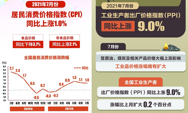 同日公布的7月工業(yè)生產(chǎn)者出廠價(jià)格指數(shù)(PPI)環(huán)比上漲0.5%,同比上漲9.0%,漲幅較6月擴(kuò)大0.2個(gè)百分點(diǎn)。