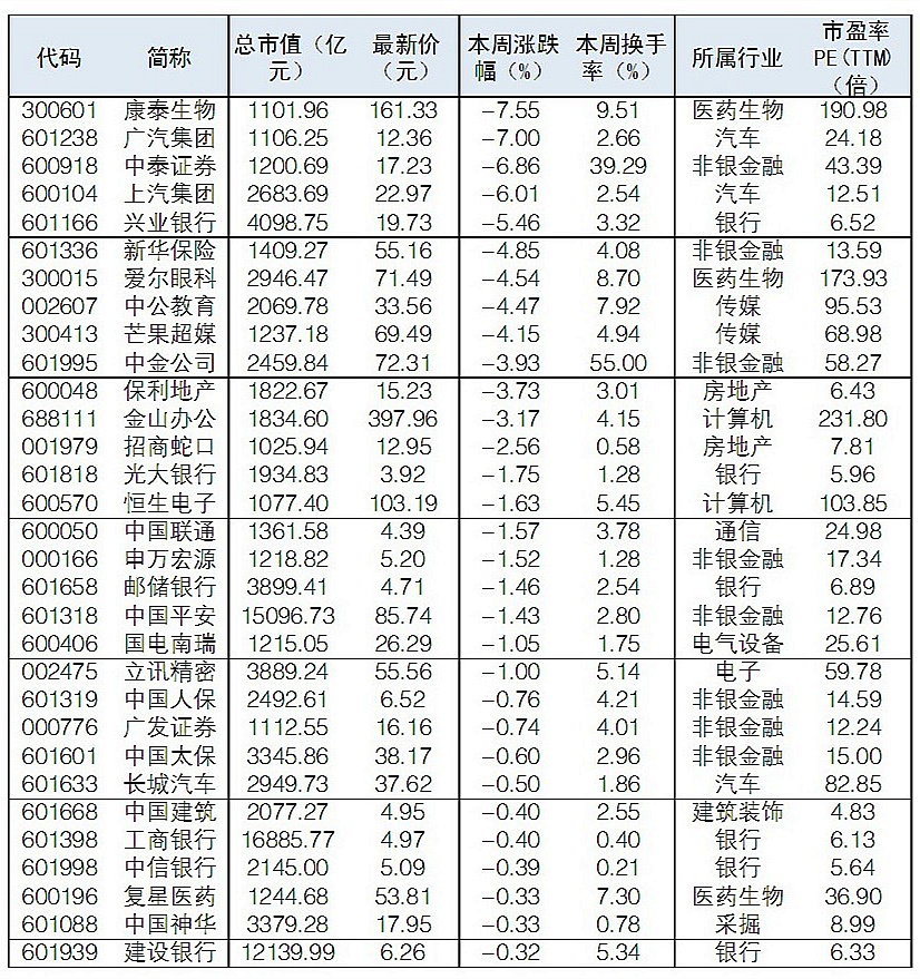 本周上證指數累計上漲2.24%,以昨日收盤來看,仍有61只千億市值藍籌股跑輸大盤。