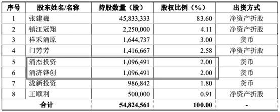 招股書顯示,冠石科技持股5%以上的主要股東有兩個(gè),張建巍直接持有冠石科技83.60%的股份,并通過鎮(zhèn)江冠翔間接控制公司4.11%的股份,合計(jì)控制公司87.71%的股份,系公司控股股東及實(shí)控人;此外,祥禾涌原、涌杰投資、涌濟(jì)鏵創(chuàng)以及瀧新投資合計(jì)持有公司482.46萬股,占公司股份總數(shù)的8.80%,受同一基金管理人上海涌鏵投資管理有限公司管理。