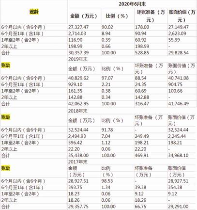 應收賬款增長的同時,雅創電子長賬齡的應收賬款也呈現出增長趨勢——招股書顯示,2017-2020年1-6月,雅創電子1年期以上賬齡的應收賬款分別為36.49萬元、418.62萬元、304.23萬元、315.89萬元,而2年以上賬齡對應的應收賬款則分別為18.26萬元、22.20萬元、142.88萬元、198.99萬元(見圖二)。