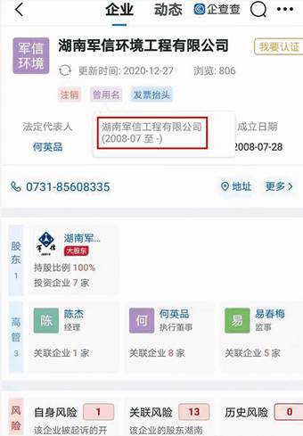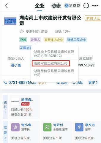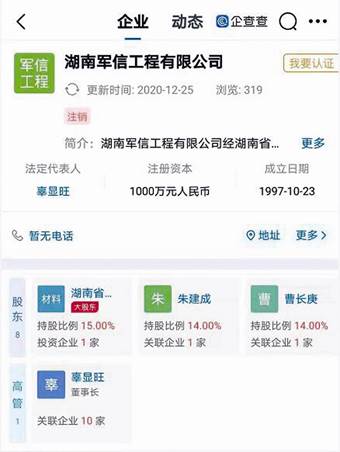 圖三:企查查關于名為湖南軍信工程有限公司的企業截圖