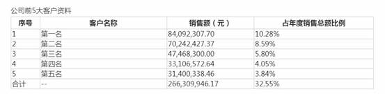 在雪浪環境發布的2017年年報中,雖未披露前五大客戶具體名稱,但從金額角度看,向前五大客戶的銷售金額在3140.03萬元至8409.23萬元區間——其中,向第一、第二大客戶銷售金額分別為8409.23萬元、7024.24萬元,向第三大客戶起銷售金額低于4800萬元(見圖三)。