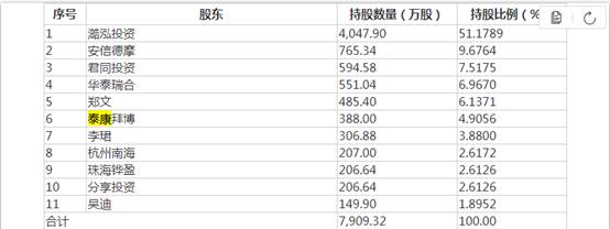 而招股書同時(shí)顯示,泰康拜博曾經(jīng)擁有家鴻口腔“大股東”身份,2017年1月,其還持有家鴻口腔988.00萬股,持股比例高達(dá)12.49%,僅次于澔泓投資,彼時(shí)為家鴻口腔的第二大股東(見下圖)。