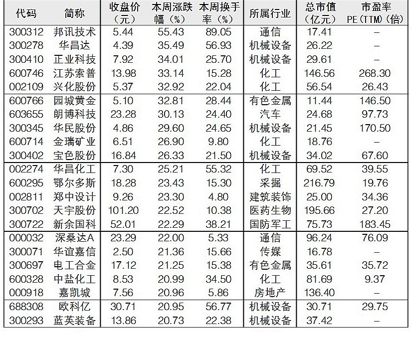 節(jié)后市場沖高后出現(xiàn)回落,昨日跌幅進一步加大。根據(jù)Wind統(tǒng)計,本周以來仍有44股漲幅超過16%。這其中,邦訊技術(shù)、華昌達、正業(yè)科技、江蘇索普漲幅居前。