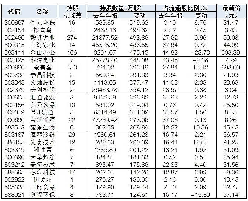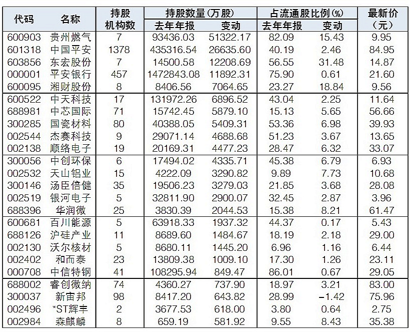 48股去年被機(jī)構(gòu)增倉超百萬股