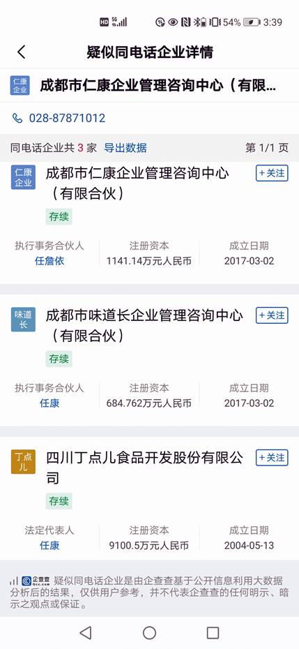 更關(guān)鍵的是,查詢企查查發(fā)現(xiàn),企查查將仁康咨詢和味道長咨詢以及丁點兒股份列入“疑似關(guān)系”,因為三者使用了完全相同的電話。
