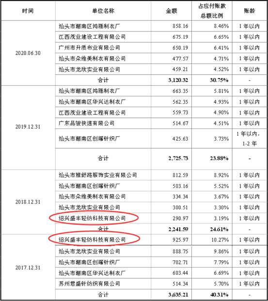 記者在招股書中查詢發(fā)現(xiàn),紹興盛豐曾為洪興實(shí)業(yè)2017年、2018年應(yīng)付賬款前五名供應(yīng)商(圖二),自2019年后退出洪興實(shí)業(yè)應(yīng)付賬款前五名供應(yīng)商。
