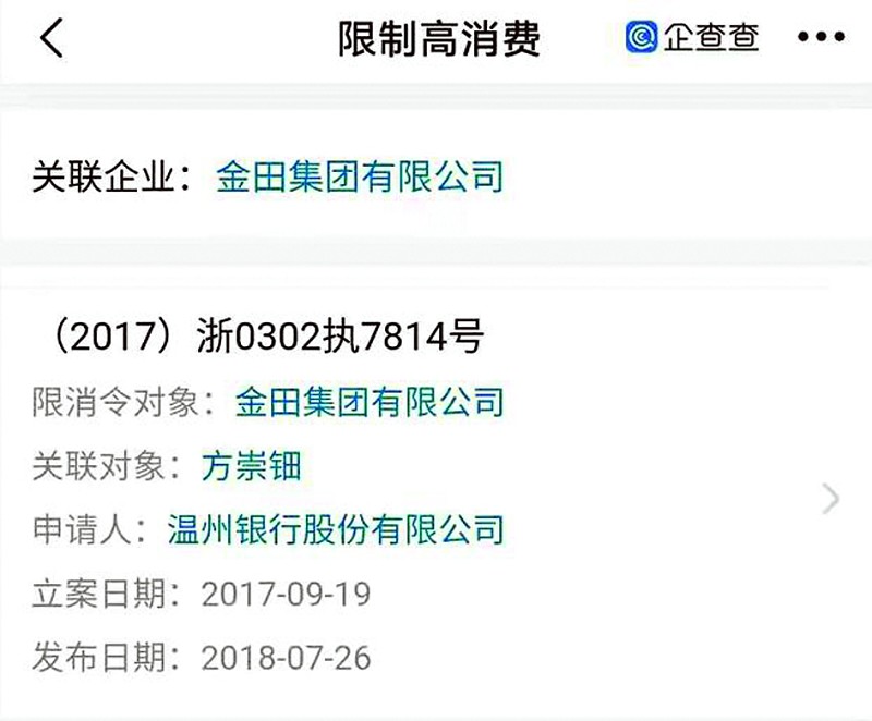 金田集團失信還被限消