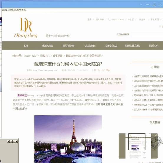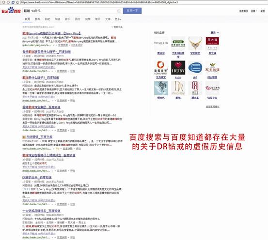 記者發現,從曹菁提供的相關百度搜索的截圖來看,在百度上輸入“戴瑞 90年代”字樣,相關的搜索結果高達1820個,而有關“香港戴瑞珠寶集團成立于上世紀90年代“的文字早在2014年的網頁中就已經出現(見圖四)。