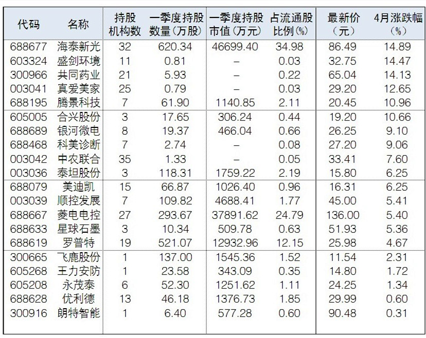41只機構(gòu)新進股4月漲幅跑贏大盤