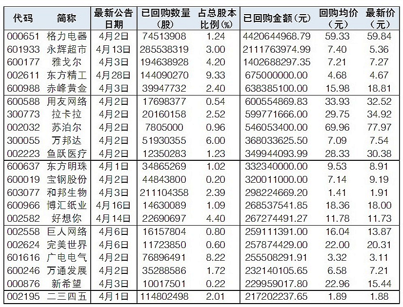 根據(jù)Wind數(shù)據(jù)統(tǒng)計,4月共計有138家公司實(shí)施了回購,其中有42家公司花費(fèi)上億元進(jìn)行回購。從二級市場來看,赤峰黃金、和邦生物、三鋼閩光的5月漲幅超過10%。