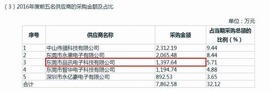 尤其需要注意的是東莞市品訊電子科技有限公司——九州風(fēng)神招股書披露的2017年和2018年前五大供應(yīng)商。