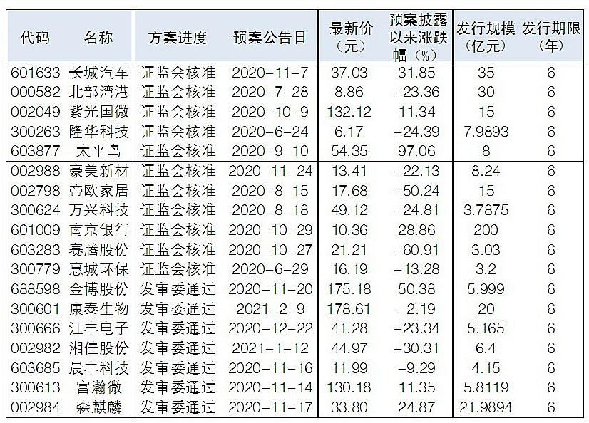 根據Wind統計,截至昨日,已有118家公司發布可轉債預案,從方案進展來看,36家公司可轉債已經獲得證監會核準或者發審委通過。二級市場來看,從可轉債預案披露以來,楚天科技、太平鳥、金博股份、瑞豐高材累計漲幅居前。