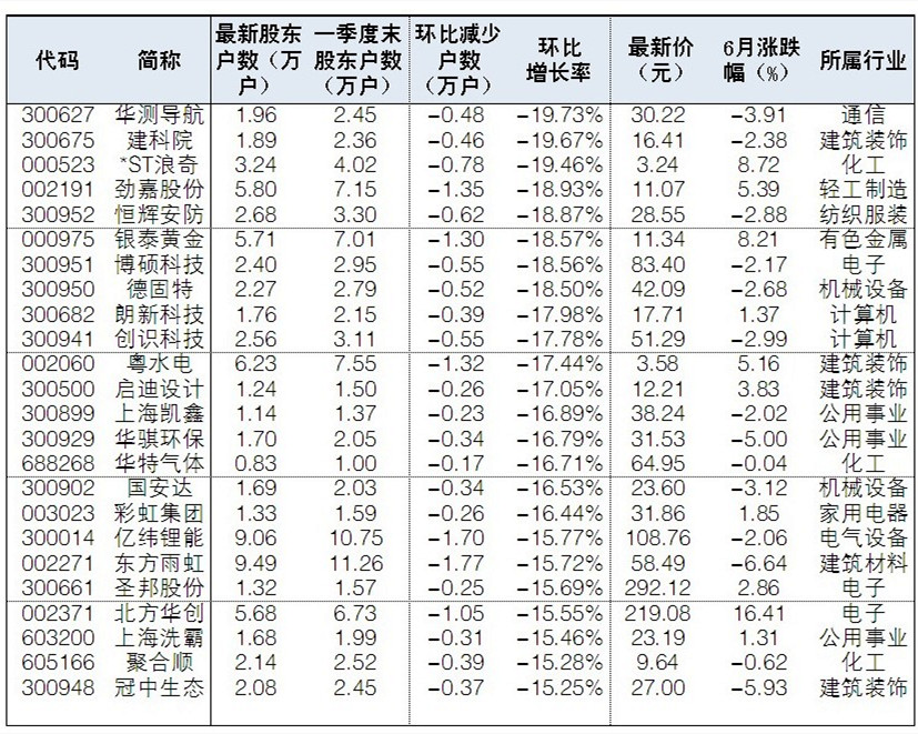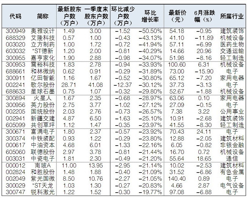 49股股東戶(hù)數(shù)環(huán)比減少超15%