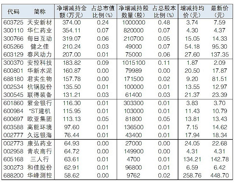 6月40股被管理層凈增持超50萬元