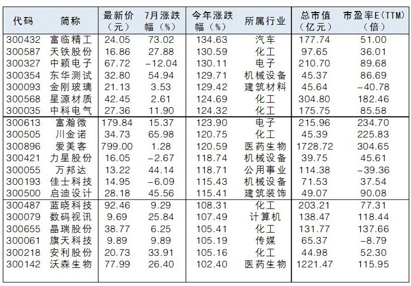創(chuàng)業(yè)板41股今年股價(jià)已翻番
