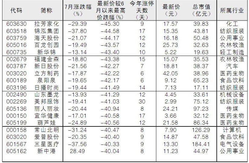 39股股價(jià)6月以來(lái)回撤幅度超40%