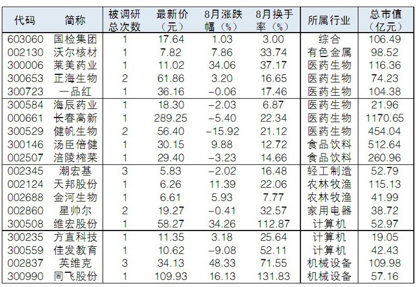 8月機構調研集中關注醫(yī)藥生物、機械設備