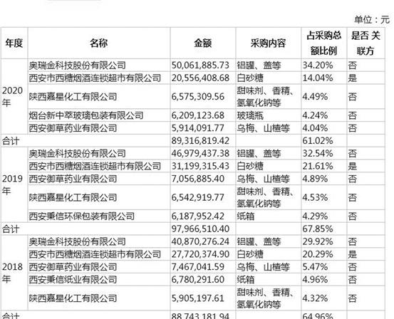 該公司的更名在冰峰飲料2019年前五大供應(yīng)商的名單上有了體現(xiàn)——2019年冰峰飲料的原材料前五大供應(yīng)商名單中,西安秉信環(huán)保包裝有限公司位列當(dāng)年公司第五大原材料供應(yīng)商,冰峰飲料當(dāng)年向其采購618.80萬元,占當(dāng)年采購額的4.29%。