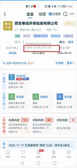 然而企查查卻顯示,西安秉信紙業(yè)有限公司成立于2004年9月1日,其在2017年7月已更名為西安秉信環(huán)保包裝有限公司(見圖六)。