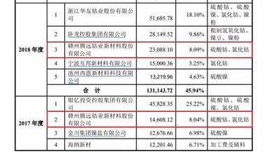 中偉股份于2020年12月A股上市,其當時招股書顯示,2018年向公司采購金額為23088.10萬元,與騰遠鈷業招股書披露的同期向其銷售金額23071.73萬元基本吻合;2019年,騰遠鈷業向其銷售金額未能進入中偉股份前五大供應商之列。