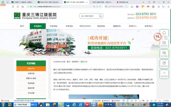 圖二:9月1日官網重慶三博江陵醫院簡介截圖