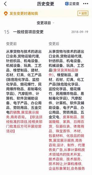也就是說,上??≡煸?018年9月19日之前,經營項目只有貨物與技術進出口,貨運運輸代理,針紡織品、機電設備、機械設備、玩具等諸多產品的銷售、展覽展示服務、商務咨詢等,并不包括廣告相關業務。