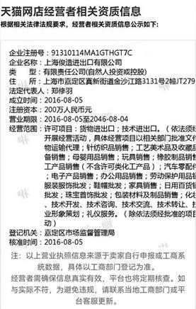 圖三:電商平臺上關于mky+洣洣官方店運營企業資質信息截圖