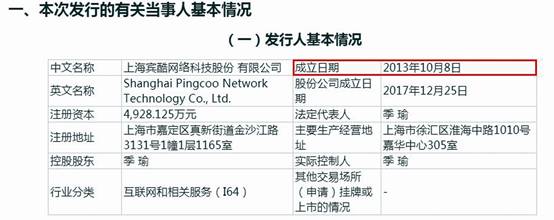 此外,賓酷網(wǎng)絡(luò)招股書中對陸雁燕入職公司的時間介紹——2013年6月起任職于公司(見圖三)——與賓酷網(wǎng)絡(luò)成立時間2013年10月8日(見圖四)還存在出入。