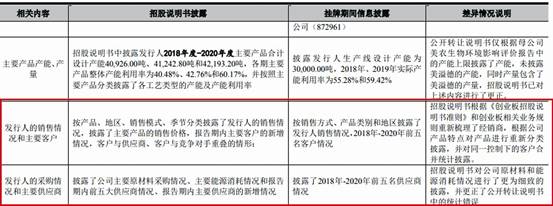 就此,公司回復(fù)稱:“關(guān)于山東奔月生物及晨光生物科技披露數(shù)據(jù)差異,主要系招股書(shū)中對(duì)公司原材料和能源消耗情況進(jìn)行了更為細(xì)致的披露,并更正了公開(kāi)轉(zhuǎn)讓說(shuō)明書(shū)中相關(guān)數(shù)據(jù)。關(guān)于大成食品披露數(shù)據(jù)差異,主要系根據(jù)《創(chuàng)業(yè)板招股說(shuō)明準(zhǔn)則》和創(chuàng)業(yè)板相關(guān)業(yè)務(wù)規(guī)則重新梳理了經(jīng)銷商,根據(jù)公司產(chǎn)品特點(diǎn)對(duì)產(chǎn)品進(jìn)行重新分類披露,并對(duì)同一控制下的客戶合并統(tǒng)計(jì)披露。對(duì)于上述信息差異,公司已于招股書(shū)中對(duì)相關(guān)數(shù)據(jù)差異原因做了詳細(xì)分解,具體詳見(jiàn)招股書(shū)第五節(jié)發(fā)行人基本情況之四、發(fā)行人在其他證券市場(chǎng)的上市/掛牌情況之(三)招股說(shuō)明書(shū)披露的信息與新三板申請(qǐng)掛牌及掛牌期間信息披露存在的差異情況。綜上,公司中介機(jī)構(gòu)已對(duì)所披露客戶、供應(yīng)商等進(jìn)行了訪談、抽查及嚴(yán)格核查, 公司相關(guān)數(shù)據(jù)披露真實(shí)、準(zhǔn)確?!?/p>