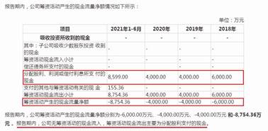此外,文華財經最近3年半的籌資活動現金流凈額全部為負,基本上都是受到公司持續分紅的影響。因為公司籌資活動現金流出情況顯示,2018-2021年上半年因為分配股利、利潤或償付利息支出的現金分別為6000萬元、4000萬元、4000萬元、8599萬元,基本與公司同期分紅金額相當(見圖五)。事實上,招股書中公司也稱“公司無籌資活動的現金流入,籌資活動現金流出主要為分配股利支付的現金。”